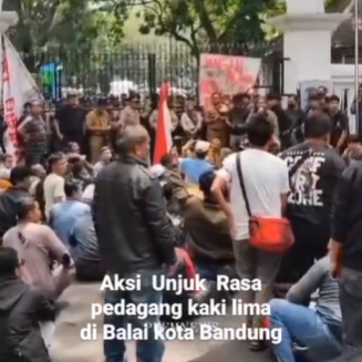 Sekira 100 orang pedagang kaki lima jalan Dalem Kaum melangsungkan aksi unjuk rasa di Balaikota Bandung.