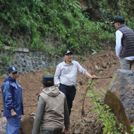 Pj Bupati Garut, Barnas Adjidin memantau lokasi bencana tanah longsor di Desa Sukarame, Kecamatan Caringin, Kabupaten (6/3/2024).